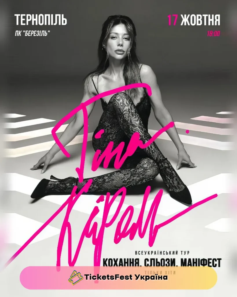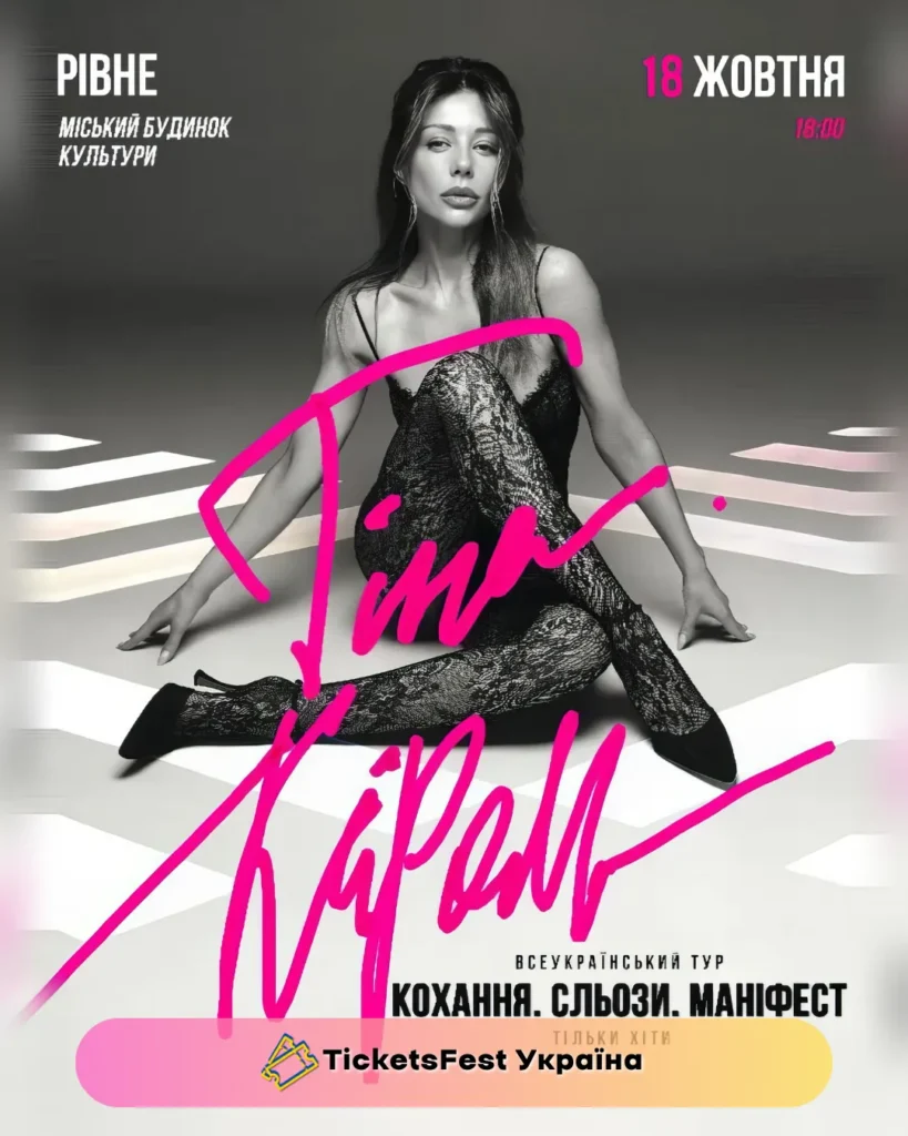 1 листопада 2026 року Тіна Кароль представить у Хмельницькому концертну програму «Кохання. Сльози. Маніфест» – шоу, яке поєднує улюблені пісні, силу щирих емоцій і живе звучання.
